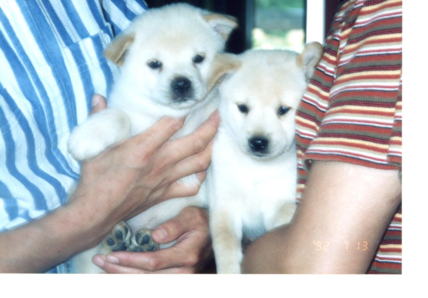 白とベージュの子犬たち